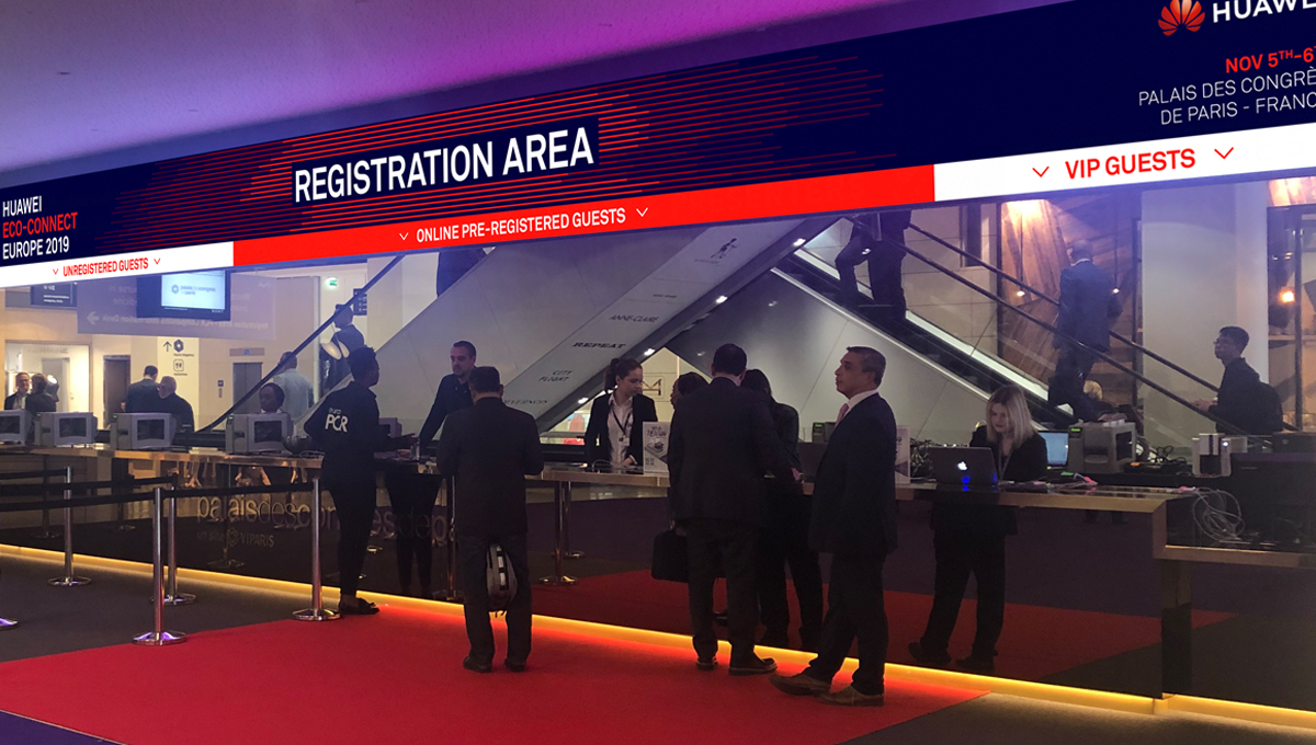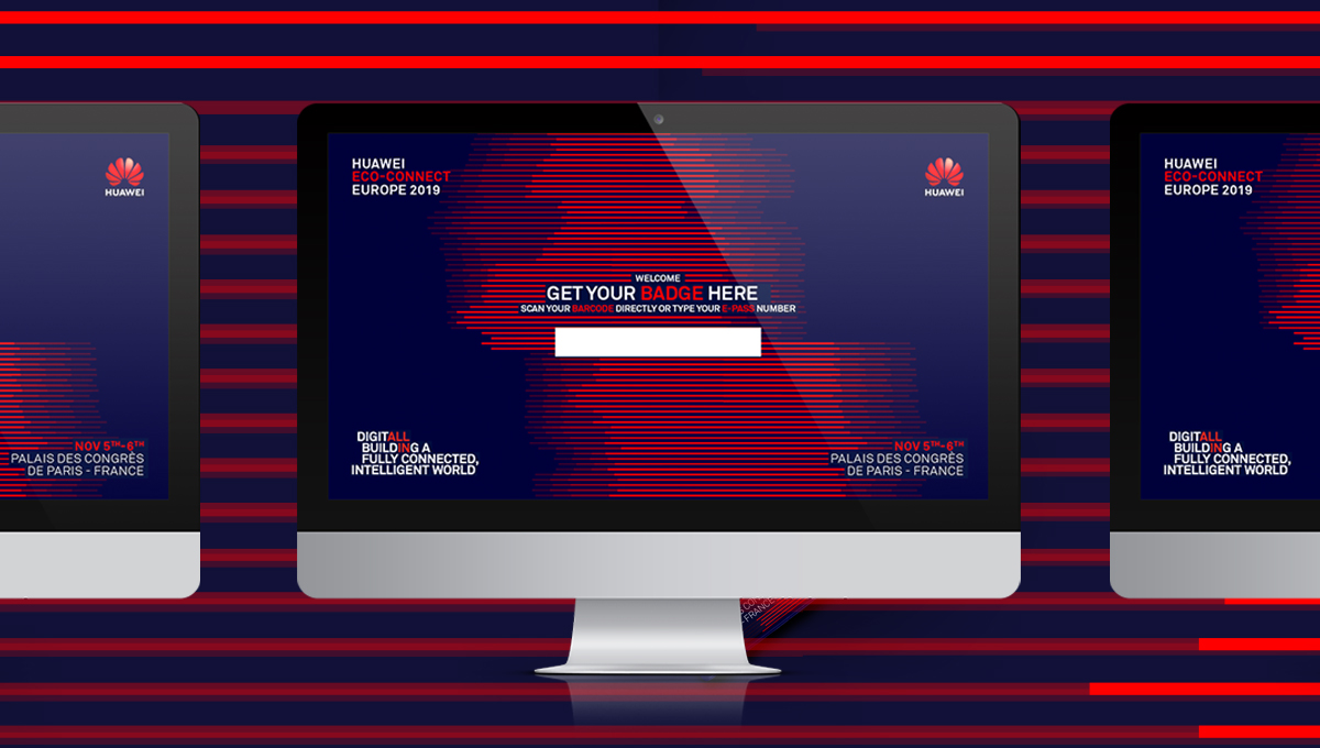 Design and concept for the graphic development of an event for Huawei at Palais de Congres de Paris.